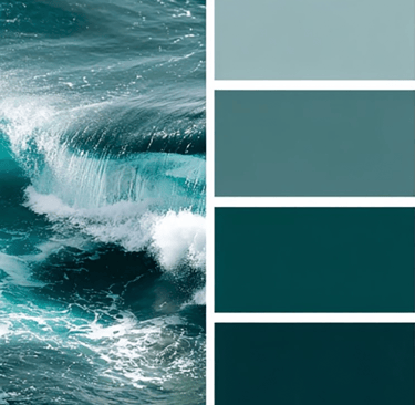 A: Ocean blues/greens and tropical vibes.